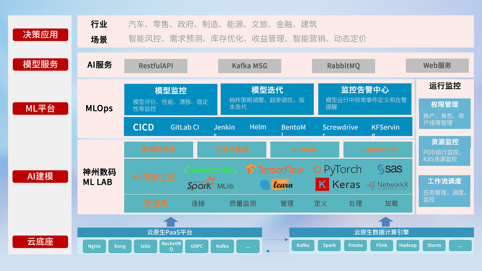 数据+模型双引擎驱动,,面向智能服务场景,,快速灵活利用AI技术,,支持业务决策,,,,助力企业智能化转型破局。。。。